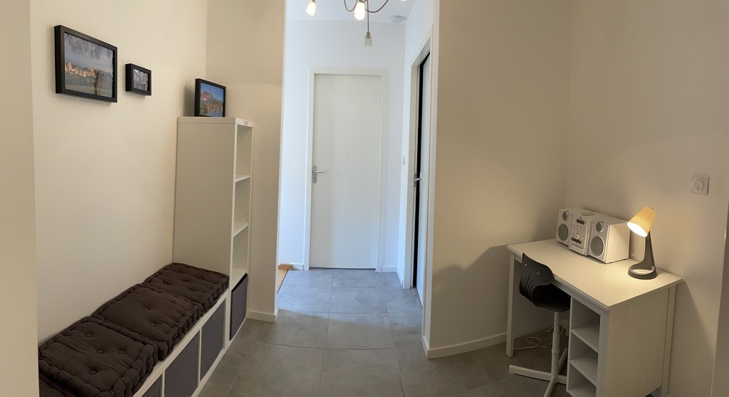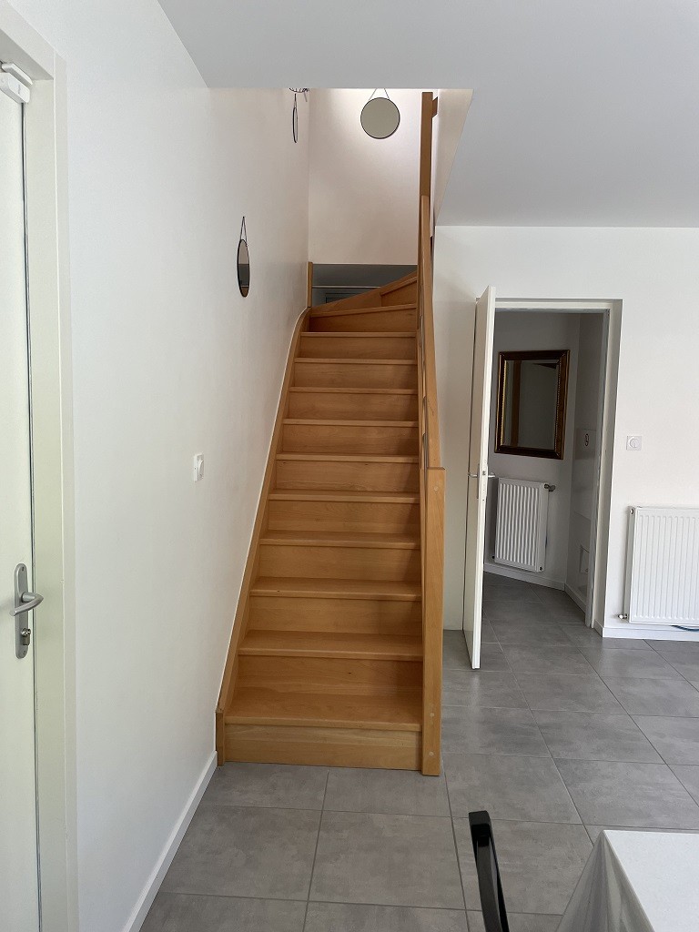 Le dégagement de l’étage offre un espace supplémentaire avec un bureau et un grand placard.
