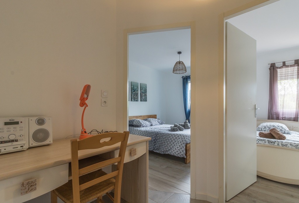 Le dégagement de l’étage offre un espace supplémentaire avec un bureau et un grand placard.